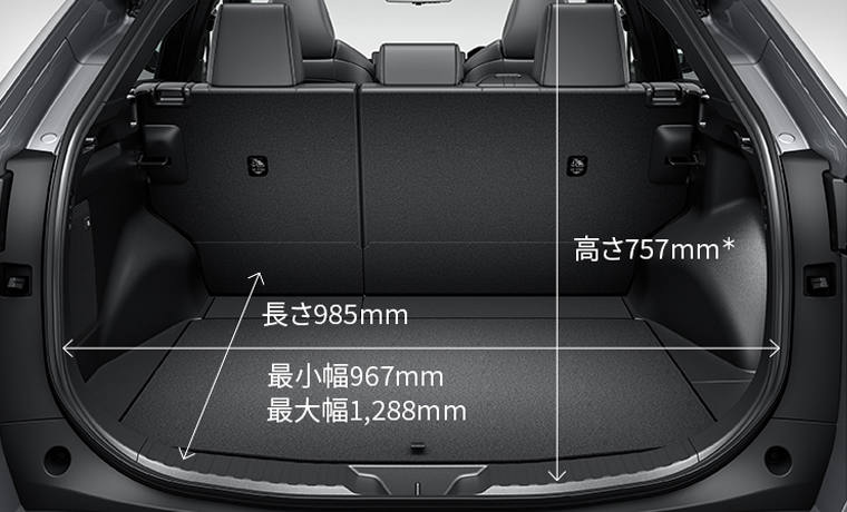 *1.交流電力量消費率、1km走行するのに必要な電力量。*2.充電電力使用時走行距離。■[ ]はメーカーオプションの235/50R20 タイヤ& 20 × 7½J アルミホイール装着時。■交流電力量消費率および一充電走行距離は定められた試験条件のもとでの値です。お客様の使用環境(気象、渋滞等)や運転方法(急発進、エアコン使用等)に応じて値は大きく異なります。